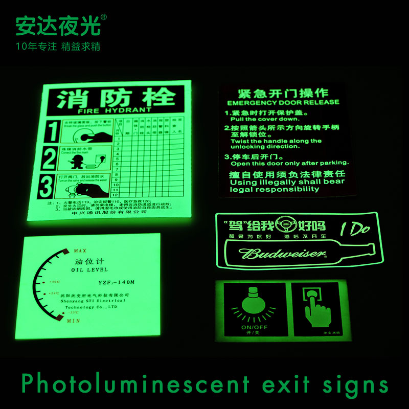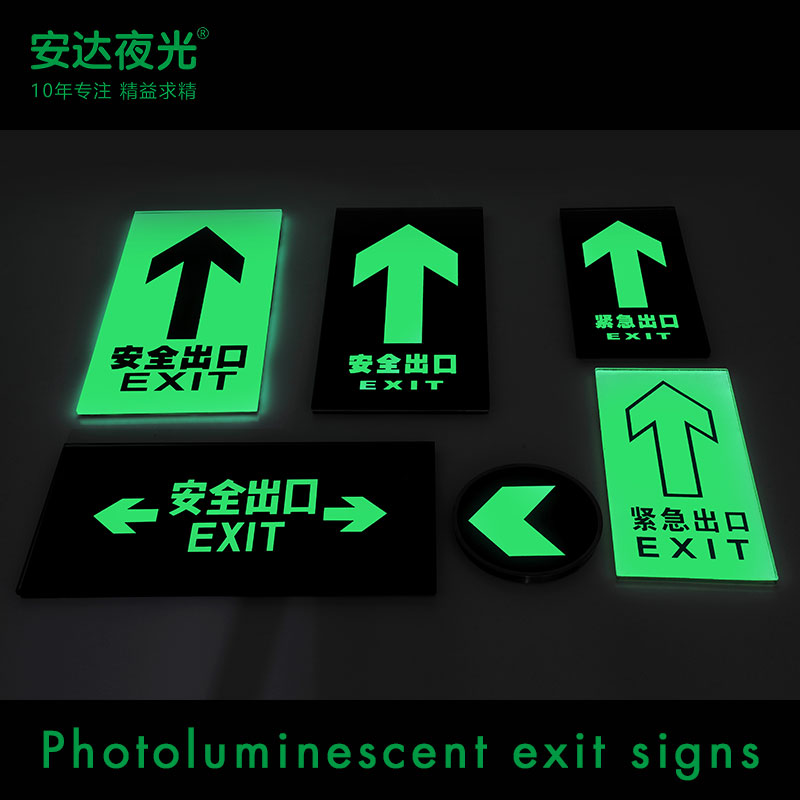 夜光安全出口標志節(jié)能環(huán)保、不耗電、無需布線、免維護,安裝方便。提供持久耐用的夜光出口標志,超長使用壽命,在緊急情況下發(fā)揮可靠的安全疏散作用。